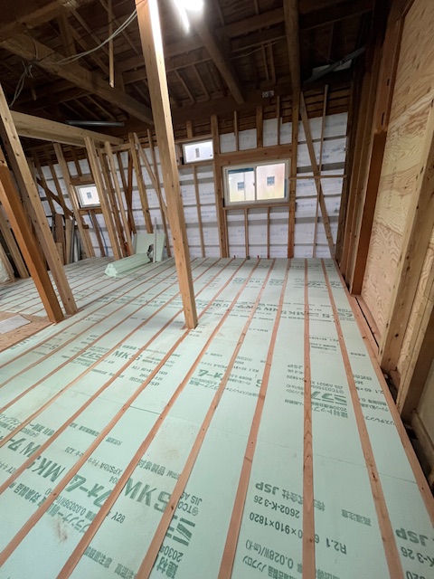 断熱材を敷き詰めてありますが、今回は全面床に敷き込みしましたが